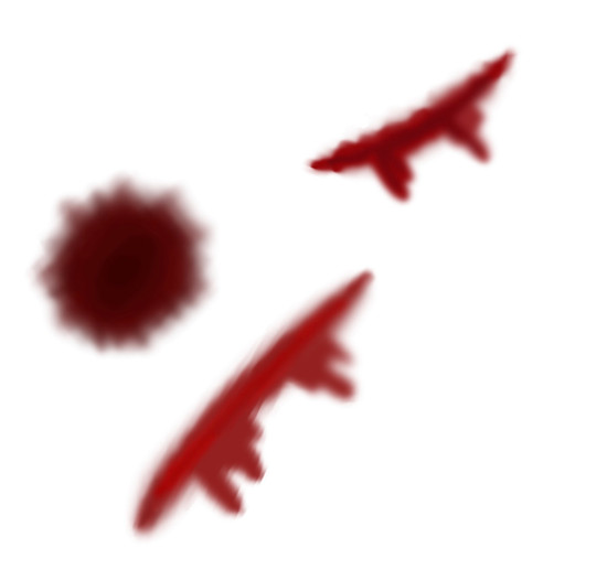 Aside from that I just keep layering and layering and layering. (Using the edited blood brush.) Then I use the normal brush and put a few shiny spots (Can be seen on the two right pics) and blend it.