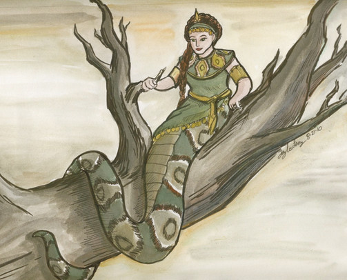 Ahh, I love it! The face is so well done and I freakin' LOVE the snake-tail deal (nagas, lamia, same diff ).