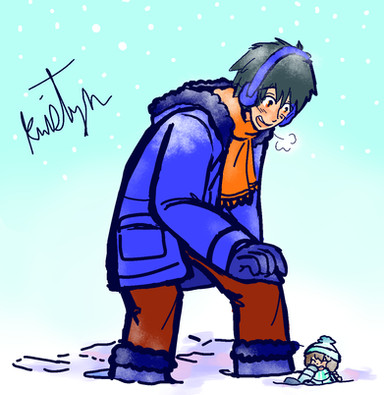 The lookalike blue shinobi kamaitachi brother who wants to sled too = Mi