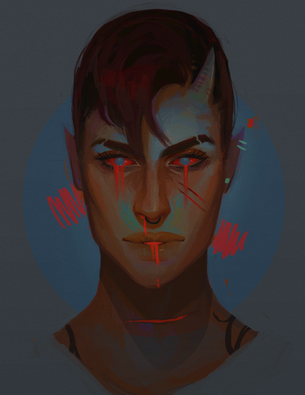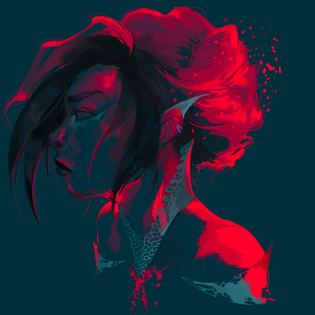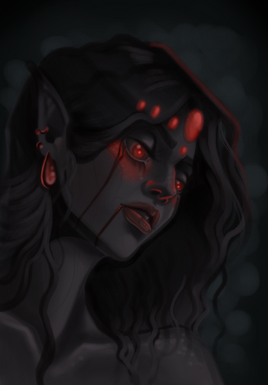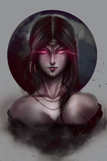 #blue #girl #angry #contempt #elf #eyes #fantasy #night #red #stare #woman