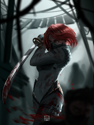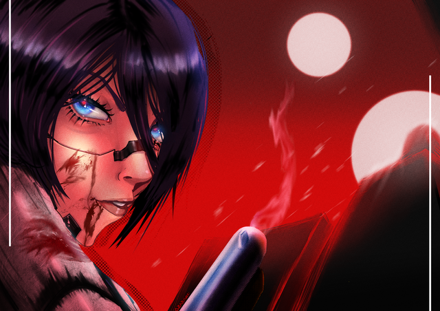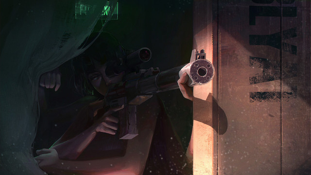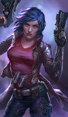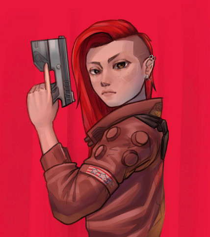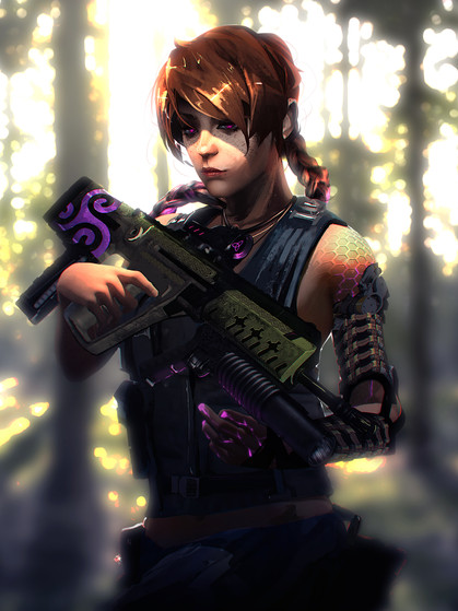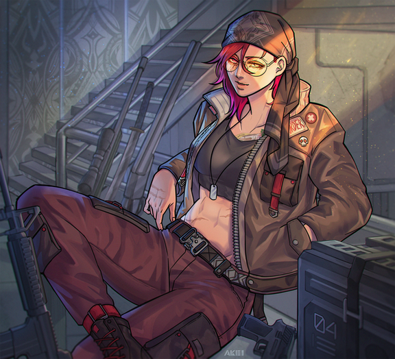 #ak #red #cyberpunk #eyes #girl #guns #hair #hot #pistol #redhead #rifle #stare #warm #woman