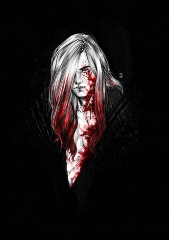#bathsheba #blood #fear #female #gritty #grotesque #horror #painting #portrait #skintightsuit