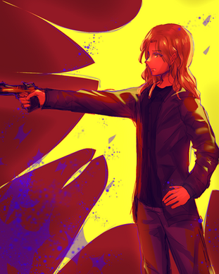 #art #blondehair #blue #coat #dual #girl #guns #pair #splash #trench #wield #woman #assassinscreed