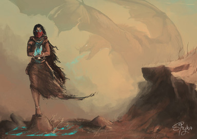 #dragon #girl #illustration #pool #reflection #sabre #sea #sword #water #woman #zamil #book #lightblade #saber #middleeasterngirl