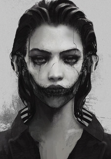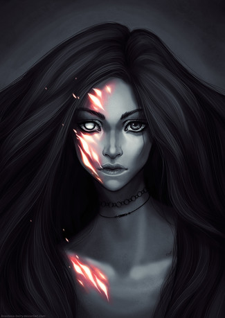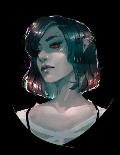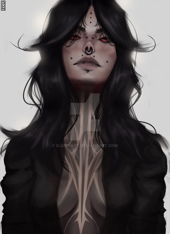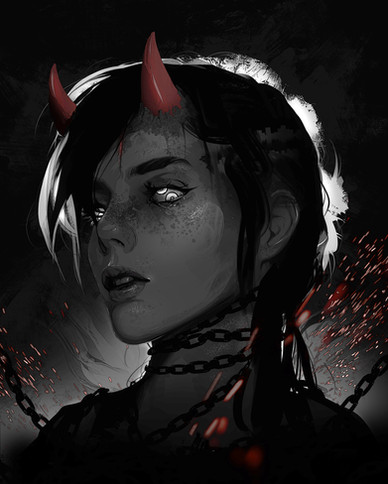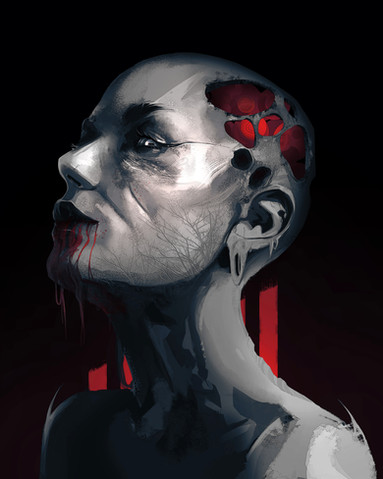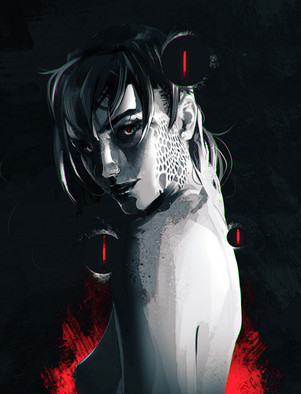 #rashedjrs #beautiful #blackandwhite #cold #commission #creepy #earings #face #glow #gritty #linework #portrait #pretty #red #scary #stare #texture #warm