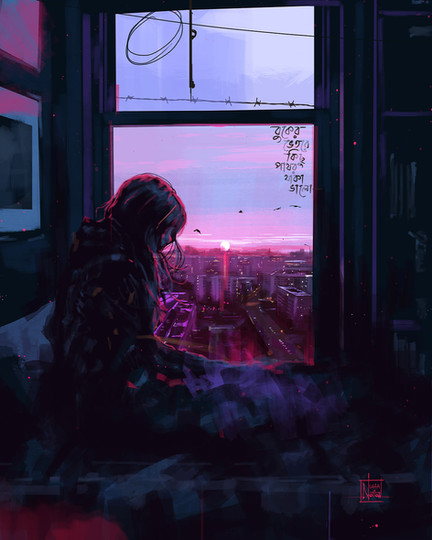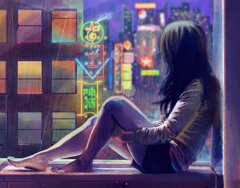 #animation #bright #chill #color #cyberpunk #girl #lights #nap #relax #sleep #train