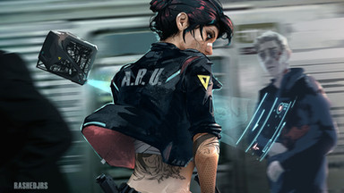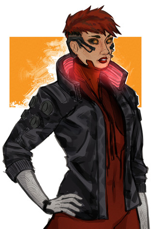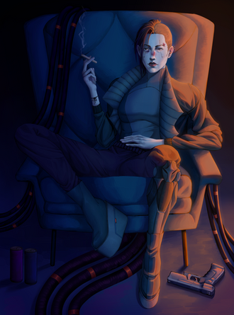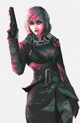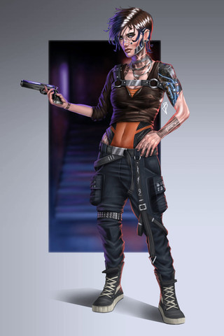 #2077 #character #cleavage #cyberpunk #design #girl #monotone #pistol #pose #punk #sitting #woman