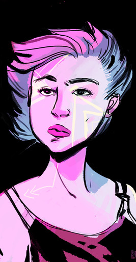 Great use of complimentary colours and shapes. I really like her necklace