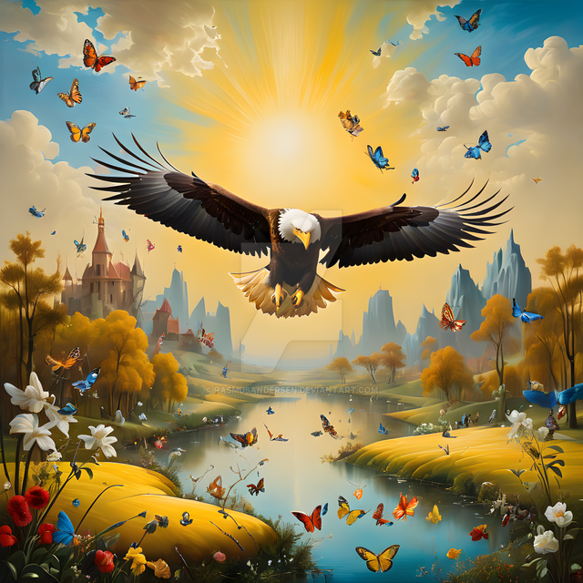 #hieronymus #painting #surrealist #animal #animals #bird #birds #butterflies #eagle #surrealart #surrealism #surreallandscape #surrealfantasy #ai_generated_art #ai_generated_artwork