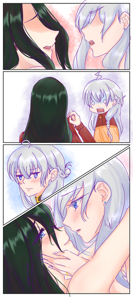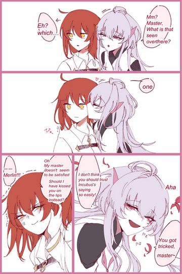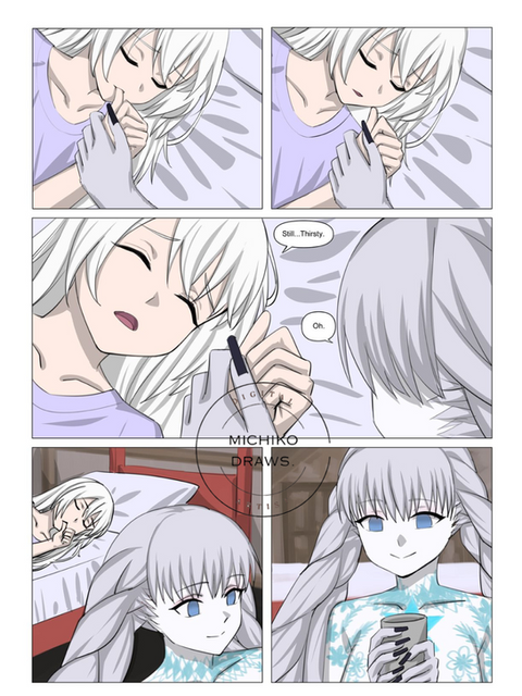 Here is part two of this comic for It is an age-swapping sequence that they thought of between the two Fate characters, Semiramis and Illya.I really love the way I drew Illya's legs in the first panel~