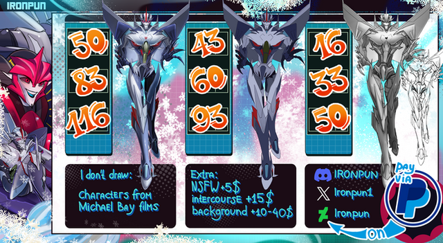 SFW and NSFW commissions are openDetailed pricing information can be found at the link.