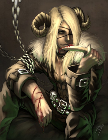 This is an amazing piece! His horns and the leather look so REAL. God, especially the leather. Too, his skin is amazing! There's red, green, yellow and brown in there, but in the end he looks mega-pale, but alive! Too, his lips look really, really good.