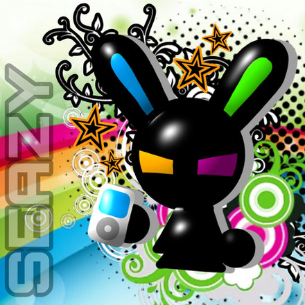 This is my first time creating a sort of abstract piece... The background was made with photoshop brushes (credit to those who I got them from) and a whole lot of blending options.The bunny skull picture I somehow came up with in 5-10 minutes after opening Flash. Very odd.