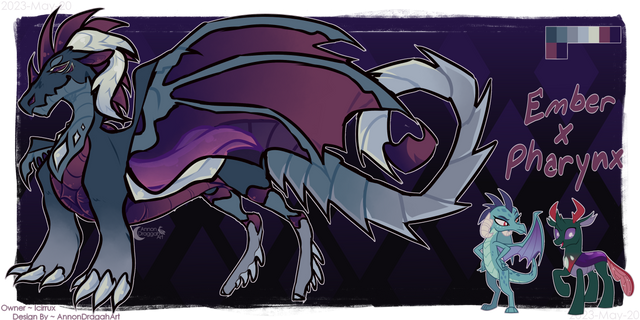 Zae is a dragonequus, part lion, dragon, eagle and pony. The average stallion only reaches where his body and wings connect, he is also considerably longer in width. He is an only child, his father is a wild stallion and his mother is a dragonequus, his mother left when he was a young bab. When he was younger he was a bit of a troublemaker and would play subtle pranks. As he got older he started noticing how his best friend, Aurelia would treat others and started to notice how his pranks affected others, so he started to act kinder and more caring towards other ponies.