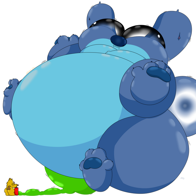 I think they tried pushing more in, but he's so stuffed there isn't a inch left in him. I think he learned his lesson...For now...Done by: www.deviantart.com/blaueseele