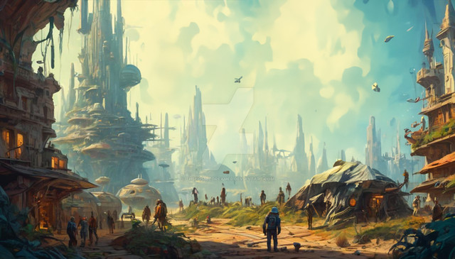 #ai #collection #cyberpunk #fantasy #fantasyillustration #kofi #landscape #machine #market #rasr #sciencefiction #scifi #steampunk #aiart #solarpunk #kofisupport