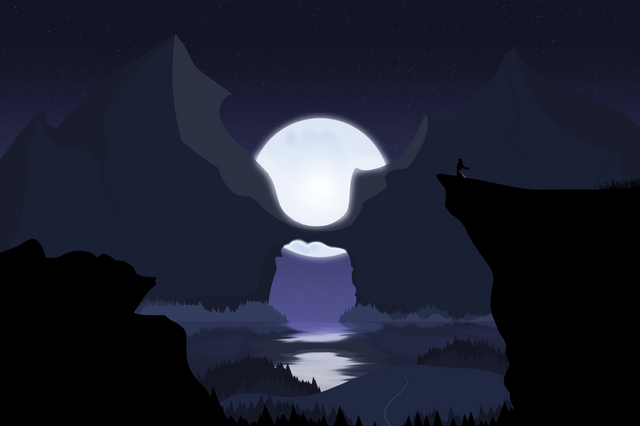 Concept art of a sunrise in the mountains.Created in illustrator
