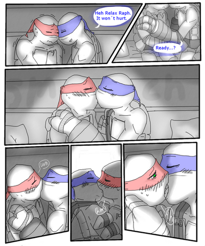 Poor Leo! Damn it, Raph! Get back here and kiss him, ya whimp! *tackles Raph*