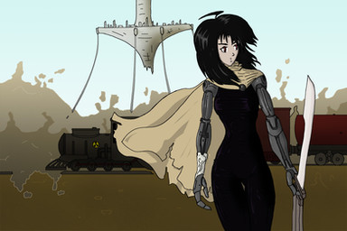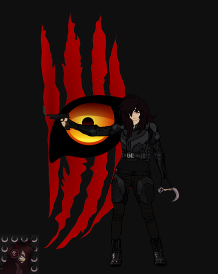 #anime #athletic #crimson #dark #darkhair #female #girl #glow #gothic #lady #manga #pistol #red #redeyes #slim #strong #stylized #sword #woman #back #destruction