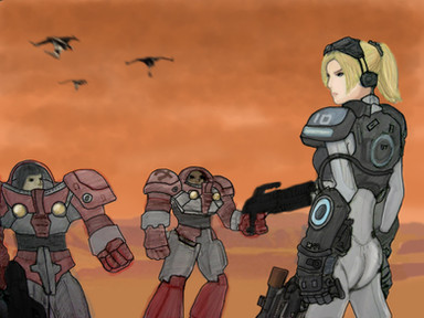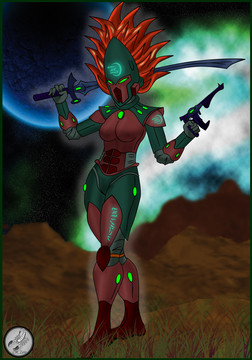 #armor #armour #catsuit #female #gauss #girl #gun #lady #male #man #mercenary #power #powerarmor #powerarmour #woman #bodyglove #gaussgun #fivegalaxies #bluehair