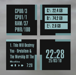 This download includes separate time/date, RAM/CPU/Power and Weather skins...I could have uploaded this at the weekend but didn't get around to it.The Weather skin is a modified version of the moxamax weather skin/Enigma.