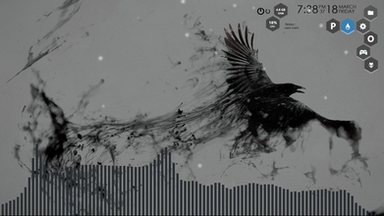 I saw this wallpaper earlier today and thought it'd be perfect for a Rainmeter skin background, so here's a new skin. System stats, launcher bar, volume control, uptime, weather, wireless and winamp control all included.Wallpaper, icons and fonts are also included in the download.