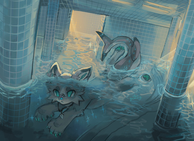 Polana met up with ora! they had a good chuckle about how soggy polana became in the water with all her fur--