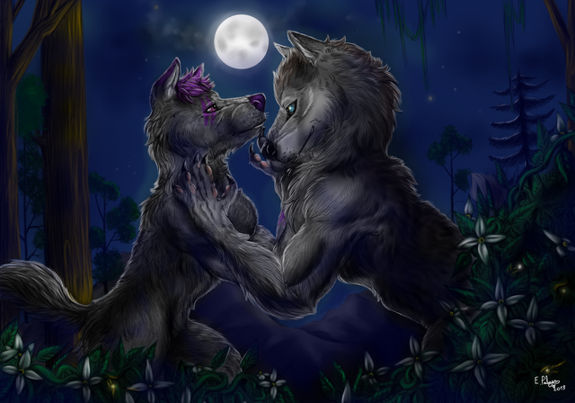 #anthro #collie #commission #couple #furry #husky #kiss #night #wolf #foxie
