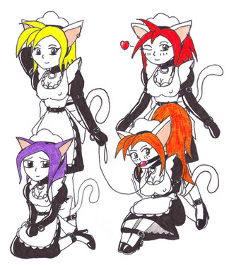 This is my entry for the contest, featuring: Bee as the beast's master(center), Diane as the bunny(upper-left), Megan as the cat(down-left), Jennie as the cow(down-right), Sandi as the bitch(Upper-right)Artist note: This is my first deviation about bondage.