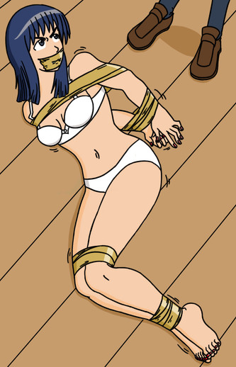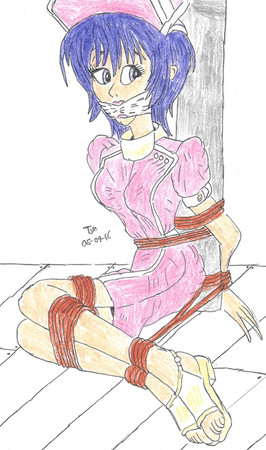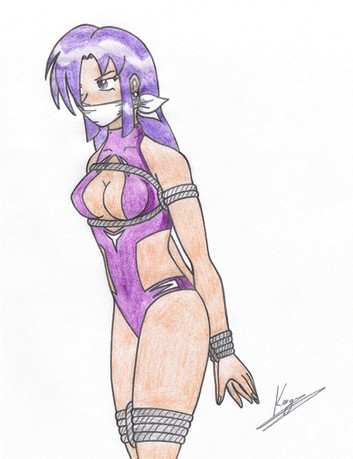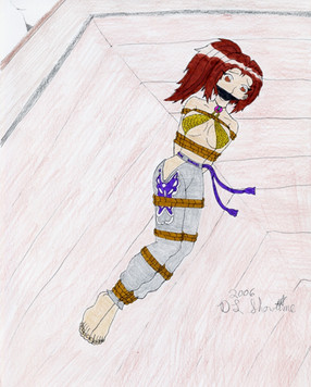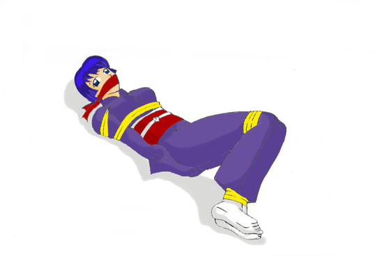 This is another version of a Hagen Army's black delmo from the Agent Aika anime. This time, this delmo girl had the bad luck to be knocked out by Meipia and her uniform has been taken by Meipia in order to infiltrate herself on the Hagen Base!ARTIST NOTE: This my first time that I draw a tied girl with the bare feet.