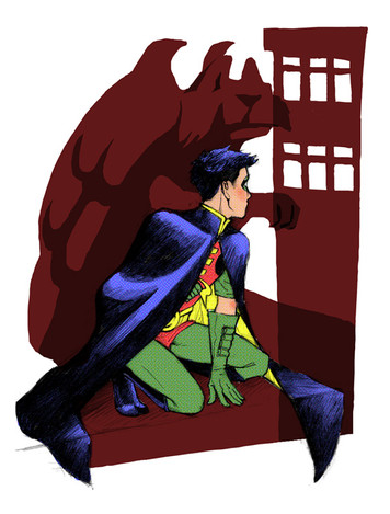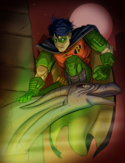 DC: Tim Drake (as Robin III)Te asked for "creaky, leathery, heavily-armored Robins" similar to Bermejo’s art in the LJ community Illustrate Me. Unfortunately I can’t draw well enough to emulate the style, but I did my best to make Robin’s costume look heavy and armored rather than spray-painted on.