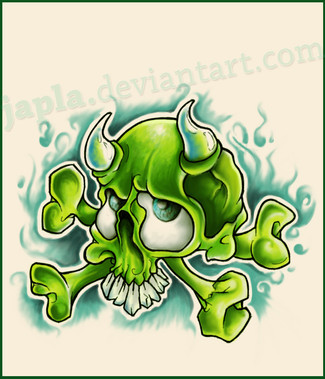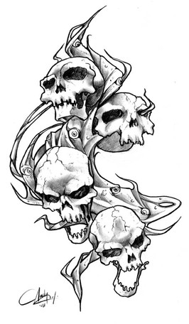 My favourite bits are the sort of wartyness of the skull, and the bubbles. Yes - the bubbles are the best bit... perhaps you should do something with more bubbles and less skulls - like a cute little duck or something...