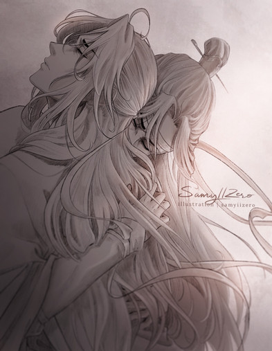 Erha illustration (The Husky and His White Cat Shizun) by me, Rautei.There is some drama between 2 main homo characters, hehe))