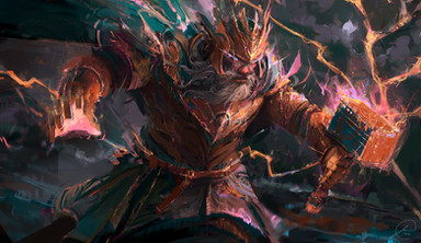 " In Norse mythology, Thor is a hammer-wielding god associated with thunder, lightning, storms, oak trees, strength, destruction, fertility, healing, and the protection of mankind " - wikiintuos4+ photoshop + 3h spare time.