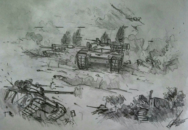 Just wanted to draw tanks and a winter scene. What do you guys think of the winter effect? Did it look like it was snowing before I told you? Does it feel like nighttime in the picture?