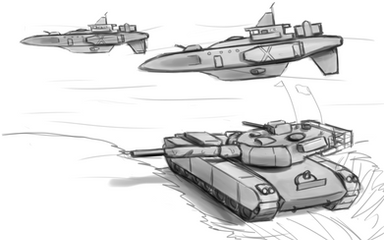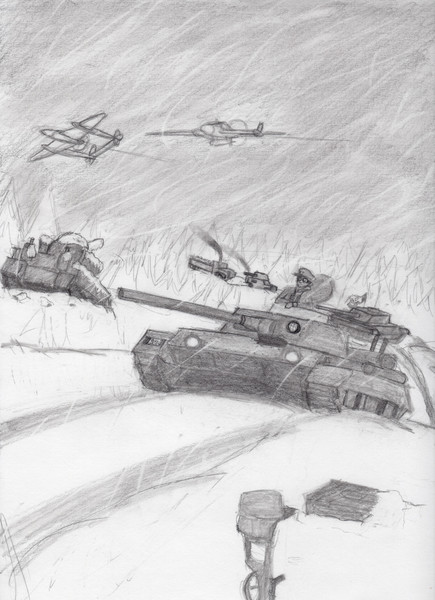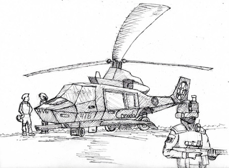 Anywho, practicing composition and making more interesting arrangements of objects in a picture. Included are the LAV-27, a "Canadianized" French VBCI, a Canadian rifleman and a CH-170 Mk.2 Orca gunship. They're fighting against someone, or it could just be a training exercise... (I've been rethinking Red Skies considerably since you last saw me write about it almost a year ago)