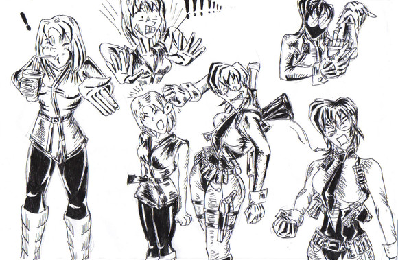 (Never drawing people playing instruments again... Don't know where the line through Katya came fromPrepare for epic brain dump. Most all of this is based off of conversations with my co-writer metal-head. None of this reveals plot, but it is useful in keeping track of what characters are like, how they look etc.