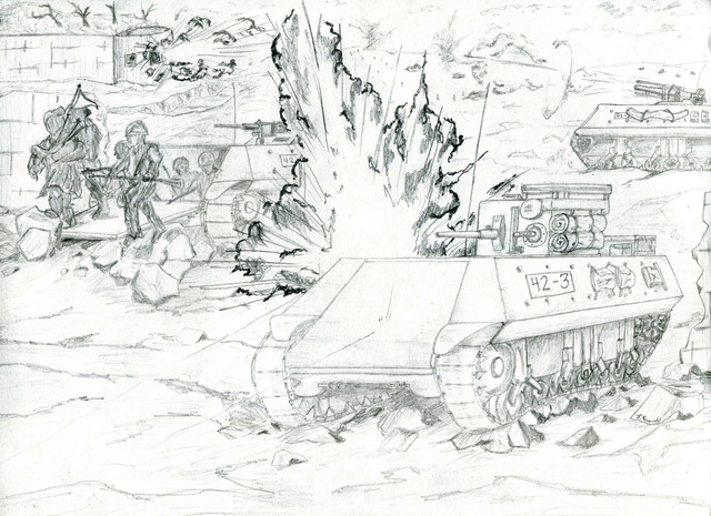 An epic battle between the USMC and the PLA on the North Korea/China border over a long range PLA anti-shipping gun. Heavily influenced by WW1 pictures. Gotta say, there is a lot going on here, but I'm proud of the Marine to the left of the M5A1 more then anything.Operation Broke Fuse was NADC Task Force 88's last major combat operation in WW3 before being relegated to police work in the recently unified Korea. The attack was heavily based of the WW1 tactic known as "rolling artillery", modernized by Smith in the NA War. The goal of Broken Fuse was to eliminate/captured the Chinese elevated RAM Gun, allowing NADC TF 124 to invade China via the Yellow Sea and take the important Dalian industrial region instead of fighting through the more heavily fortified Mongolia region.