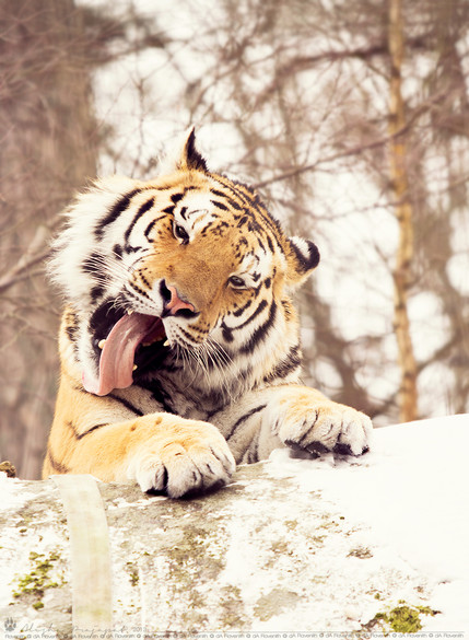 There were two snow leopards and they've just woken up from a nap. When they were walking around, they discovered that they left some food behind and started to eat that.One of them were even near the water and I regret that I didn't take more pictures of them.