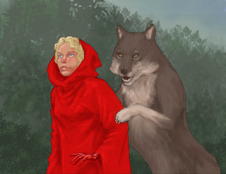 #girl #darkfantasy #digitaldrawing #digitalpainting #foggyforest #forestfantasy #foresttrees #illustration #redridinghood #wolf #medibangpaintpro