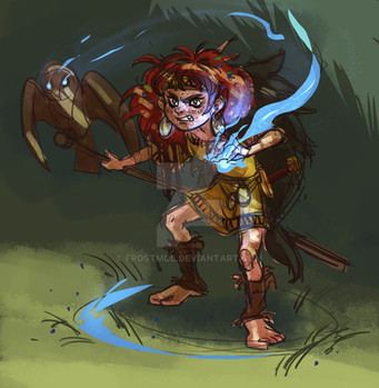 Gorgeous design!Β I especially love her head-dress; the contrast in textures between the soft fur/feathers and the sharp branches is great!Β Hope to see more pieces featuring this character.