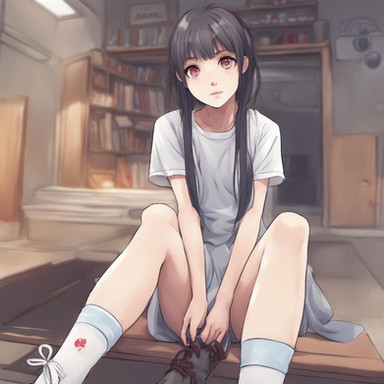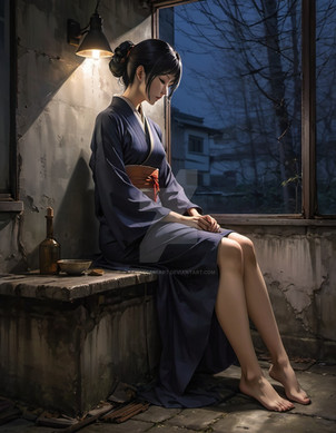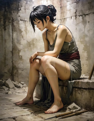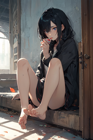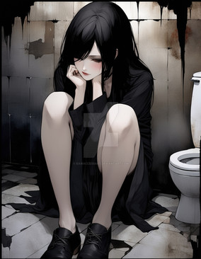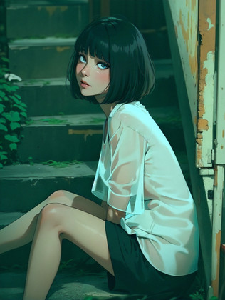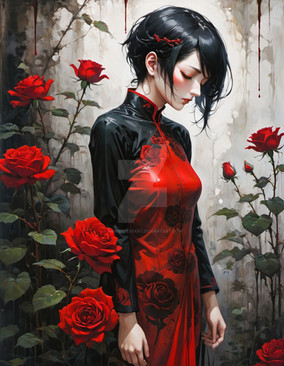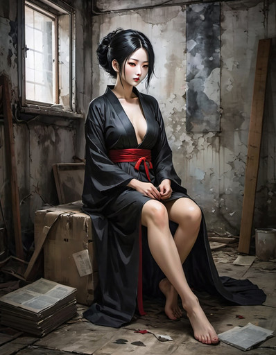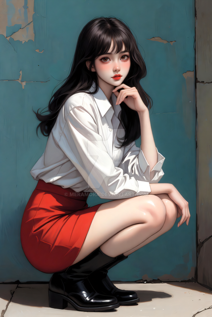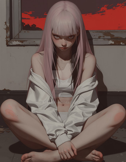 #abandoned #alone #anime #cute #dress #girl #hybrid #lost #realistic #red #ruins #sitting #urban