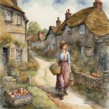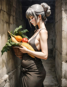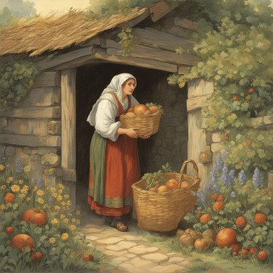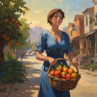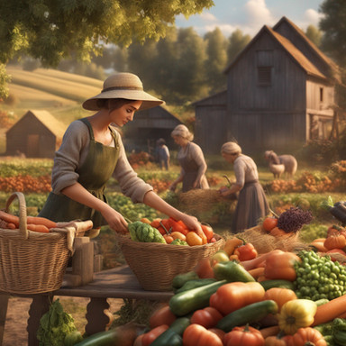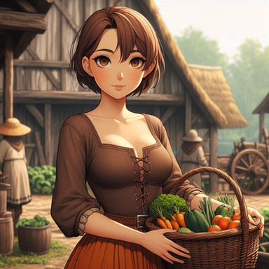 #anime #contemporary #farm #farmhouse #female #food #fruit #homemaker #house #modern #offering #rustic #scene #sitting #style #wife #woman