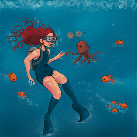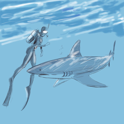 Was looking for art prompt and it came up with something like scuba diver and water creatures, so here it is.#ocean #water #animal #fish #octopus #anglerfish #shark #jellyfish #dark #scubadiving #sketch #illustration #digitalart