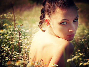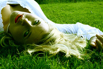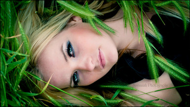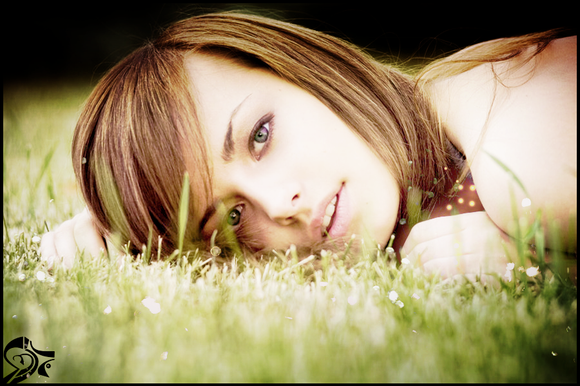 That is the real color of her eyes? Anyway I like the ton-sur-ton with the grass and the simplicity of the shot, very clean.