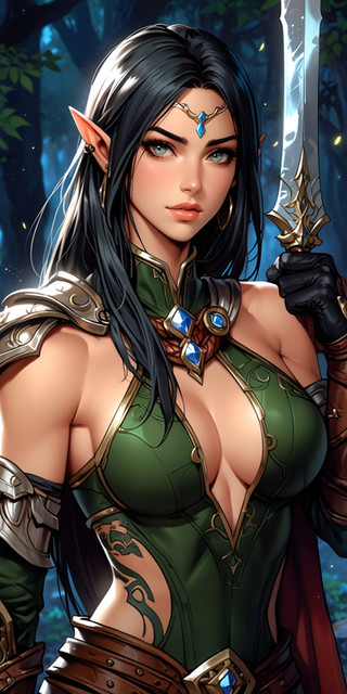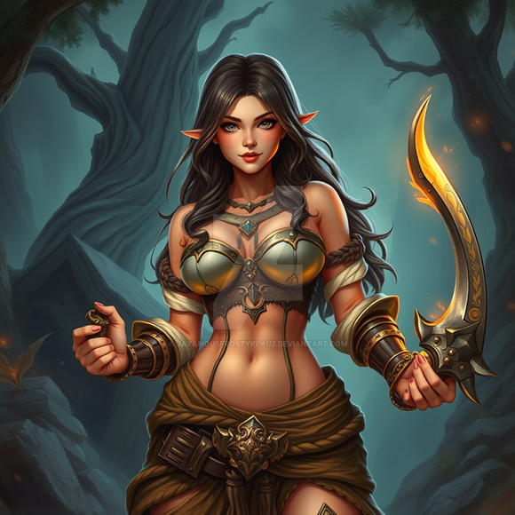 #digitalart #characterdesign #videogamefanart #warrior #magic #fantasyart #fantasycharacter #elf #rpg #ai #dreamup #cartoon #portrait #worldofwarcraft #fanart #adoptable #beauty #dnd #forest #busty #pathfinder #redhead #sexy #tabletop #ttrpg #ai_art