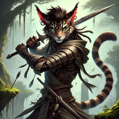 #characterdesign #adoptable #warrior #cat #feline #ai #dreamup #digitalart #fantasycharacter #portrait #fantasyart #digitalpainting #dnd #thief #magic #catfolk #fluffy #furry #kitty #pathfinder #ranger #tabaxi #tabletop #ai_art