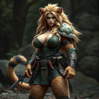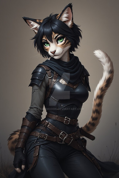 #characterdesign #warrior #fantasycharacter #cat #catgirl #feline #ai #dreamup #digitalart #cartoon #portrait #adoptable #magic #fantasyart #animal #medieval #boobs #breasts #busty #dnd #furry #pathfinder #ranger #rpg #sexy #tabletop #tits #ai_art