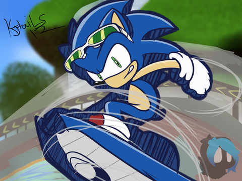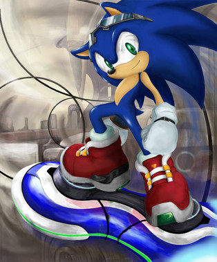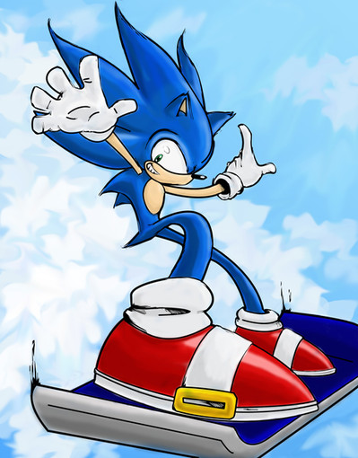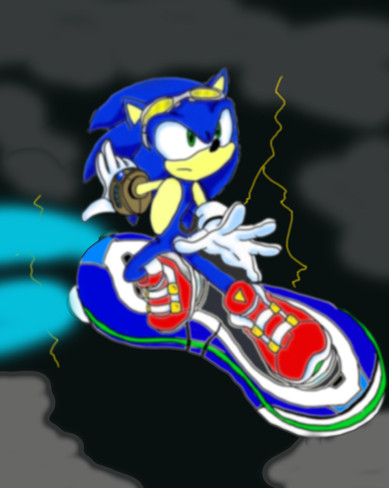 My goodness! This is such an epic and spectacular drawing of Sonic riding on his hoverboard that youβve done!