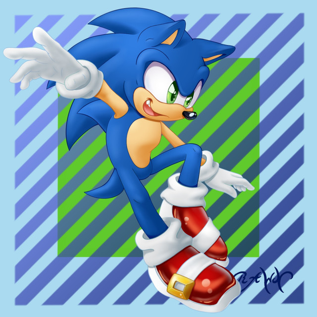 I am really amazed with the way you coloured and shaded and highlighted all this, along with the effects like the motion streaks from where Sonic is moving, and the background with the clouds! And I really love the pose and expression that you gave him too! He just looks absolutely badass and outstanding!